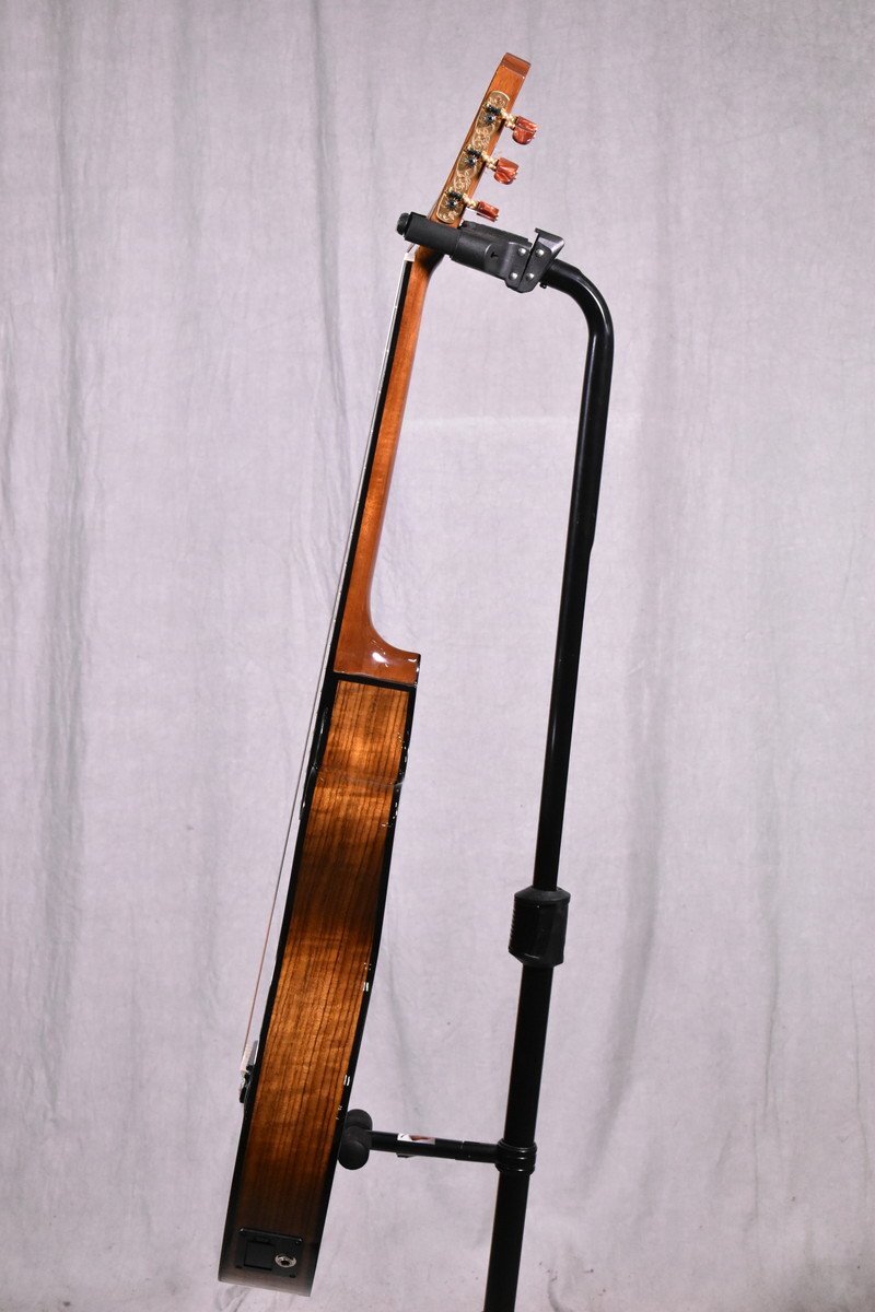 - Mặt trước gỗ tuyết tùng nguyên tấm (Solid Cedar) mang lại âm thanh ấm áp, tinh tế và cân bằng, kết hợp với lưng và hông gỗ hồng đào ép (Laminated Rosewood) tạo ra sự cộng hưởng hoàn hảo giữa âm trầm sâu và âm cao sáng, đồng thời hệ thống thanh giằng cổ điển (Classical Fan Bracing) giúp tăng cường độ bền và tối ưu hóa khả năng phát âm mạnh mẽ, chính xác.