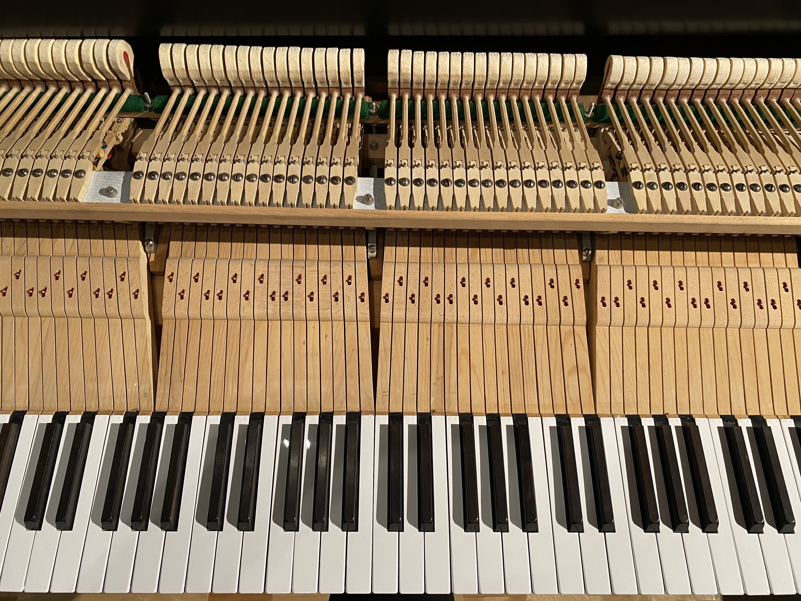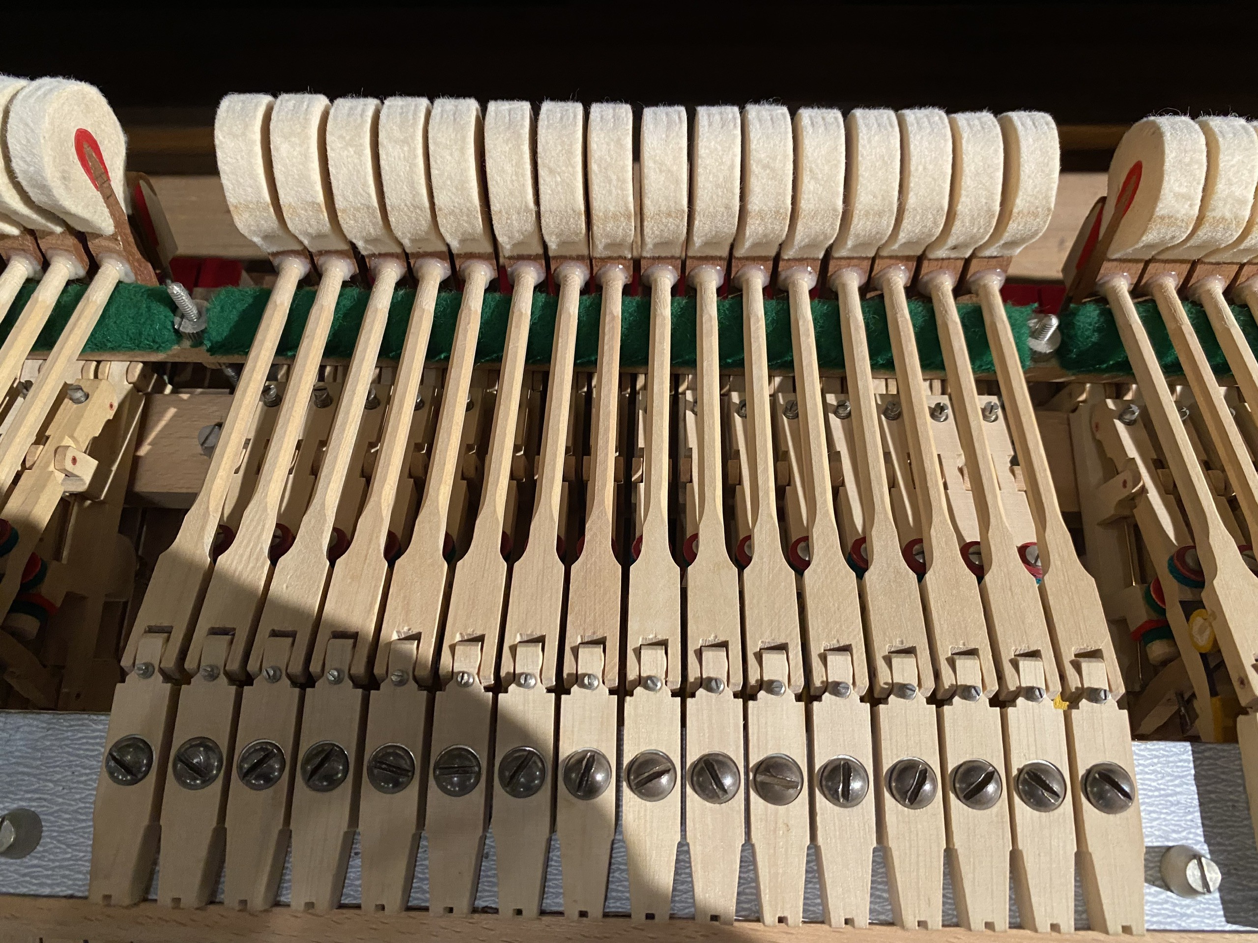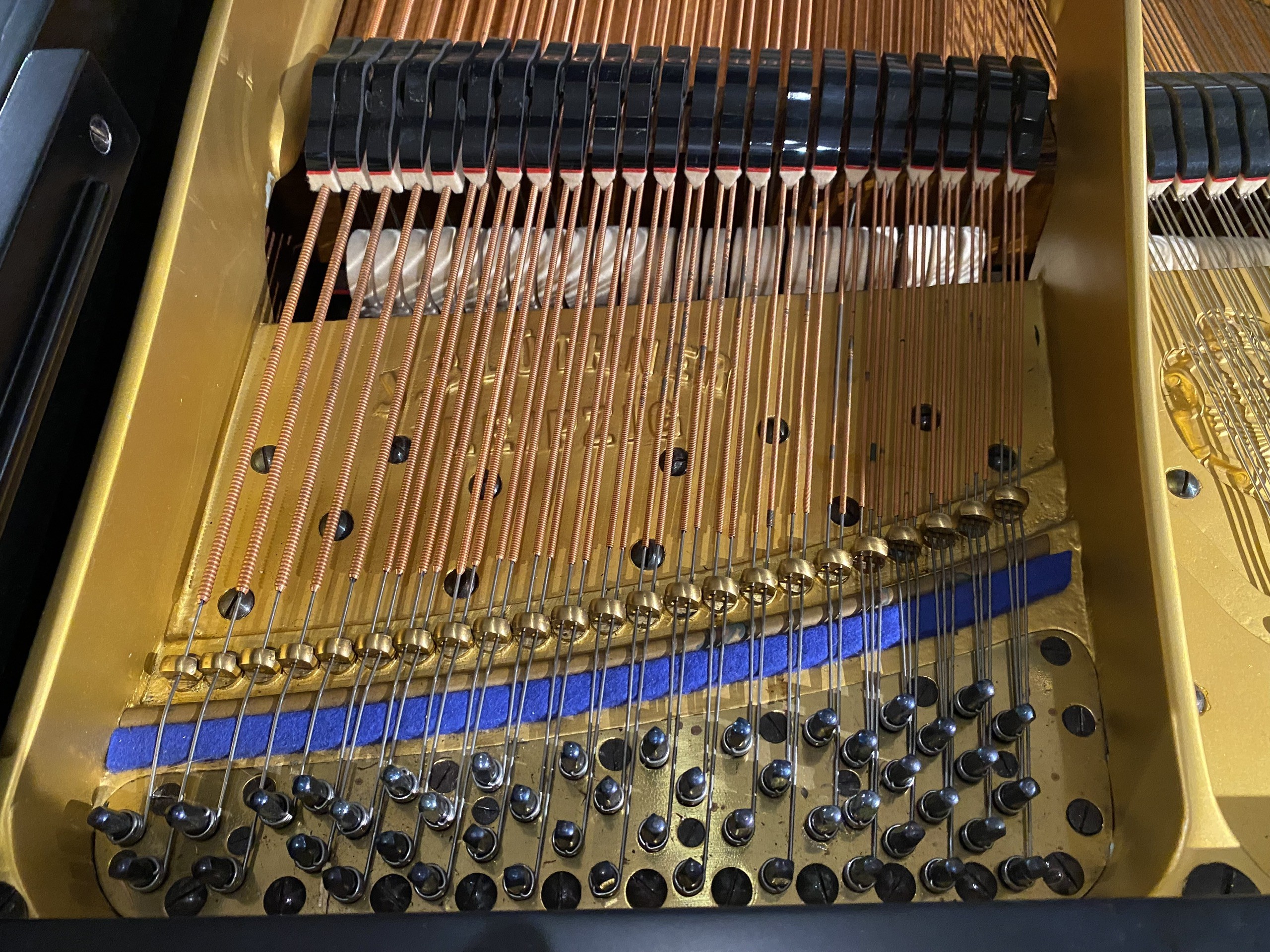 Được khôi phục hoàn toàn vào năm 2013, với tất cả các bộ phận bộ máy Renner for Blüthner, búa Blüthner, bạc lót phím và nỉ giảm chấn, cũng như thùng cộng hưởng bằng gỗ vân sam châu Âu mới, mũ ngựa đàn Maple, dây đàn Đức và chốt chặn Đức. Không có gì được hoàn tác trong nhạc cụ tuyệt vời này. Kết thúc là tuyệt vời trên trường hợp phong cách Victoria. Cây đàn piano này là một sản phẩm hiếm có và có Giai điệu vàng mà những cây đàn piano Blüthner được biết đến.Chiếc hộp đựng nghệ thuật 7′ Blüthner màu Ebony Satin này đi kèm với một chiếc ghế dành cho nghệ sĩ và đã qua kiểm định của chúng tôi. Nó đã được tân trang lại tại trung tâm phục hồi của chúng tôi bởi các kỹ thuật viên chuyên nghiệp của chúng tôi. Điều này bao gồm nhưng không giới hạn ở: